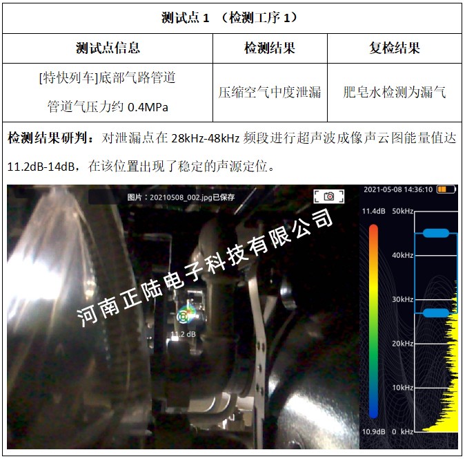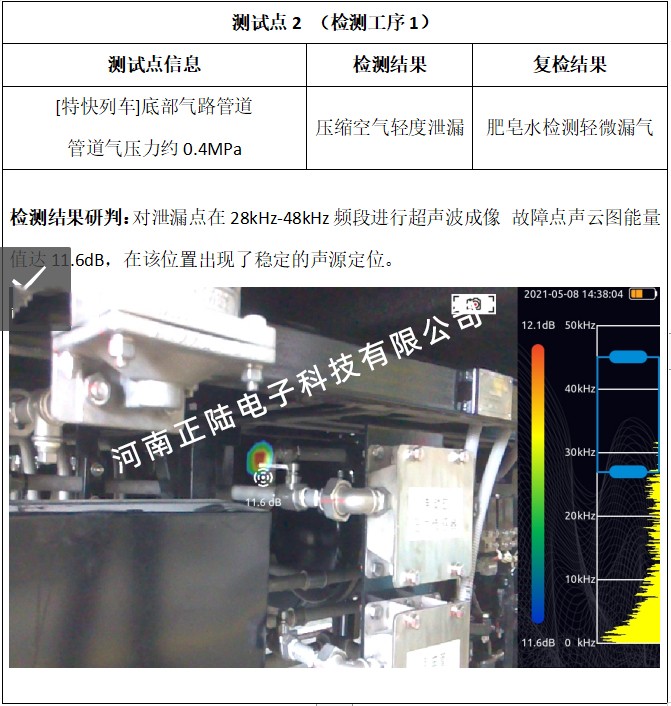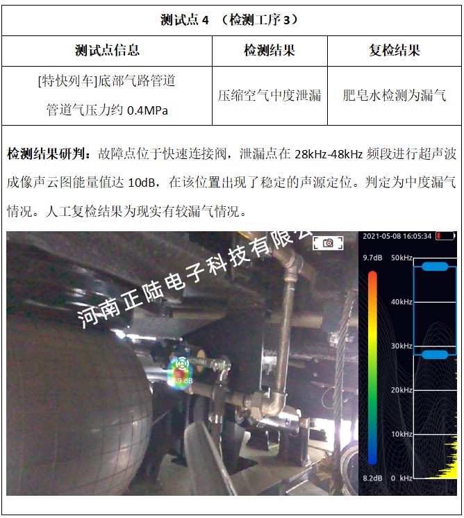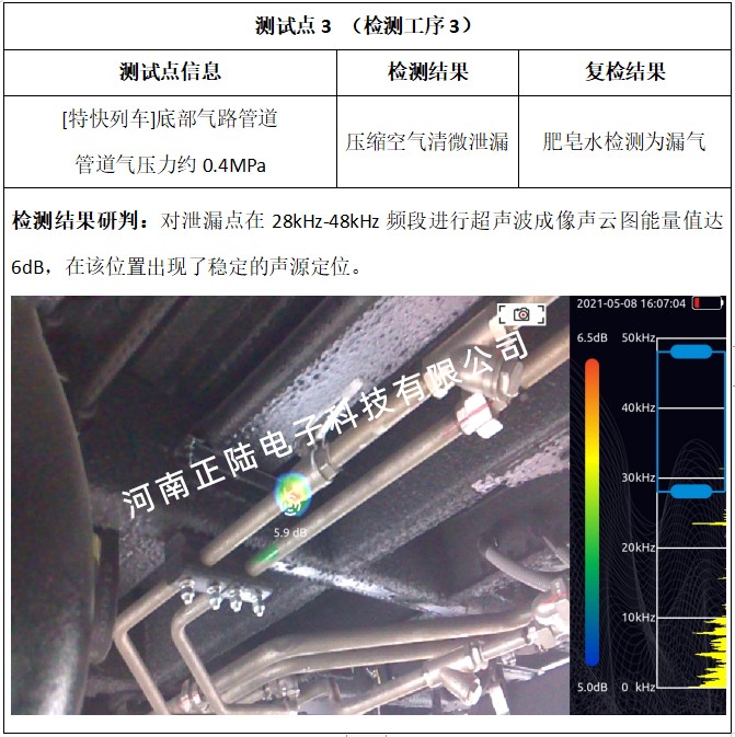 二道工序,由于現場給予檢測的列車馬上需要轉移至下一道工序,現場檢測比較倉促暫未監測到泄漏點。